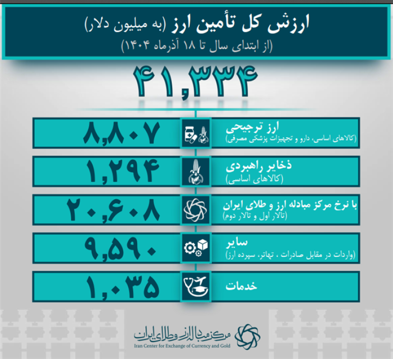 همچنین در سرفصل خدمات از جمله ارز مسافرتی، دانشجویی و درمانی هم 1 میلیارد و 35 میلیون دلار ارز تأمین شده است.