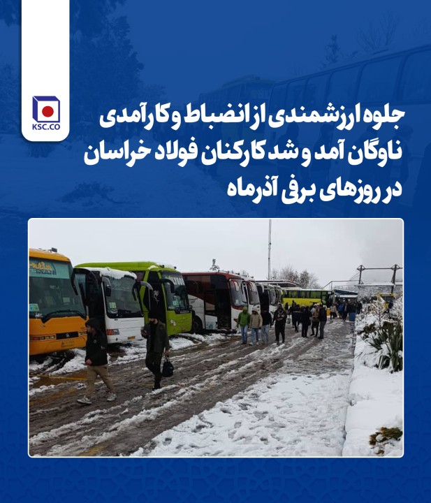 بارش سنگین برف و سرمای کمسابقه روزهای ۲۸ و ۲۹ آذرماه، انضباط، برنامهریزی دقیق و تعهد سازمانی در سرویسدهی ایاب و ذهاب شرکت مجتمع فولاد خراسان را به منصهی ظهور رساند.